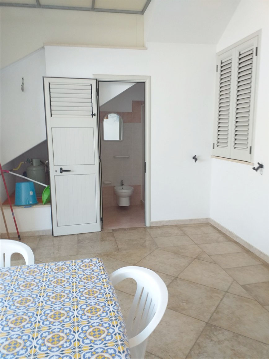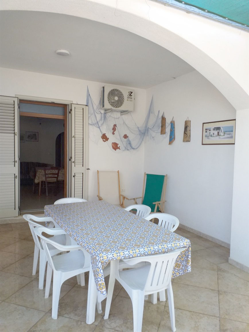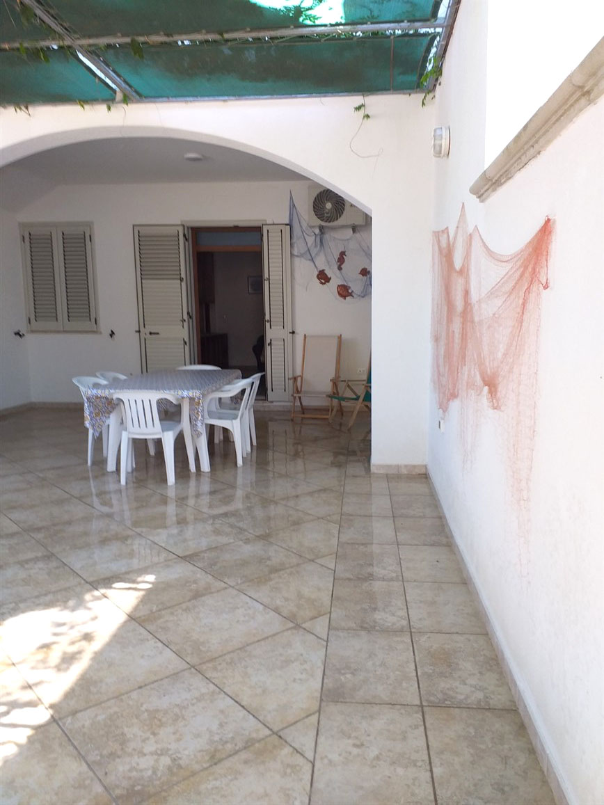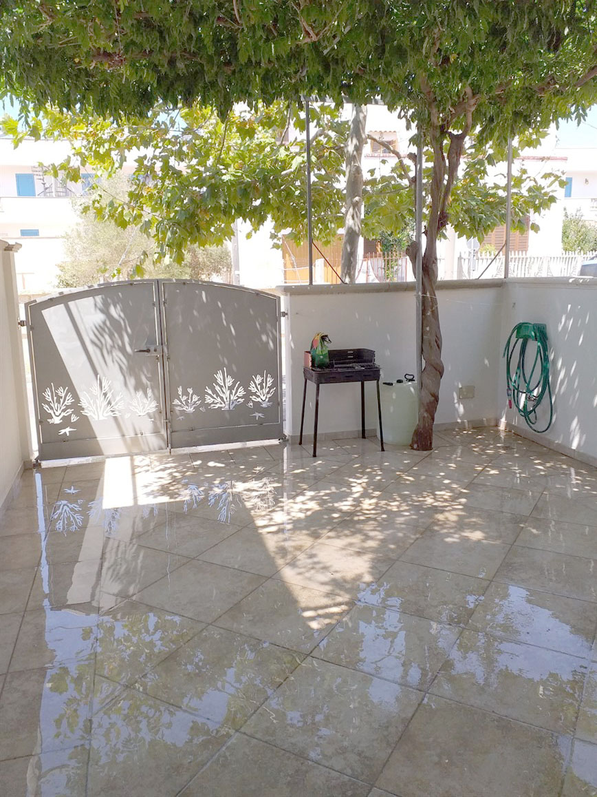 Appartamento al piano terra, realizzato con ottime rifiniture ed in ottime condizioni, sito in Torre Pali marina di Salve. Composto da posto auto, terrazza coperta, tinello, due w. c., tre camere da letto, spazio scoperto retrostante, allacci acquedotto e fogna alla rete pubblica, climatizzata. Lotto originario di circa 150 mq, superficie coperta circa mq 73, portico 19 mq e circa mq 50 scoperti antistanti e retrostanti. Vendita comprensiva di arredi.